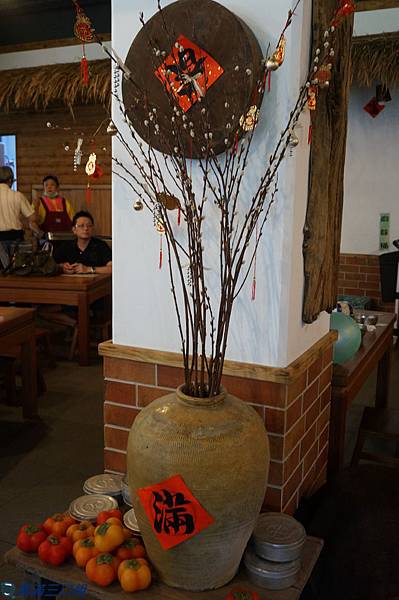 柱子上頭也有著磚塊顏色的裝潢...更加增添了農家氣息!